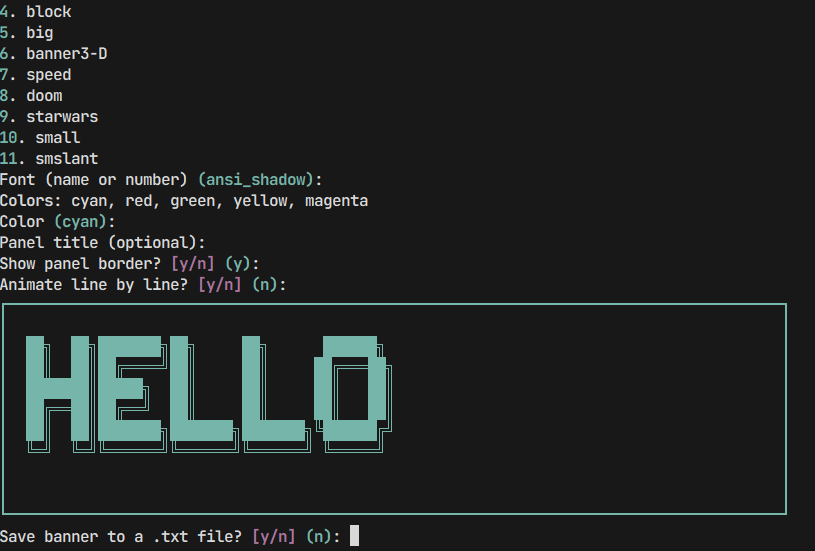 High-performance CLI tool for generating colorful and animated ASCII banners. Enhances terminal aesthetics for developers.